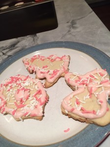 Hi last christmas i made sugar cookies I almost forgot how good they were.But took a lot of time because you had to put the dough in the fridge for about 1 hour.At the end they were super tasty not a bad presentation.These sugar cookies are great for christmas parties and great for christmas eve. Tip:don’t put to much